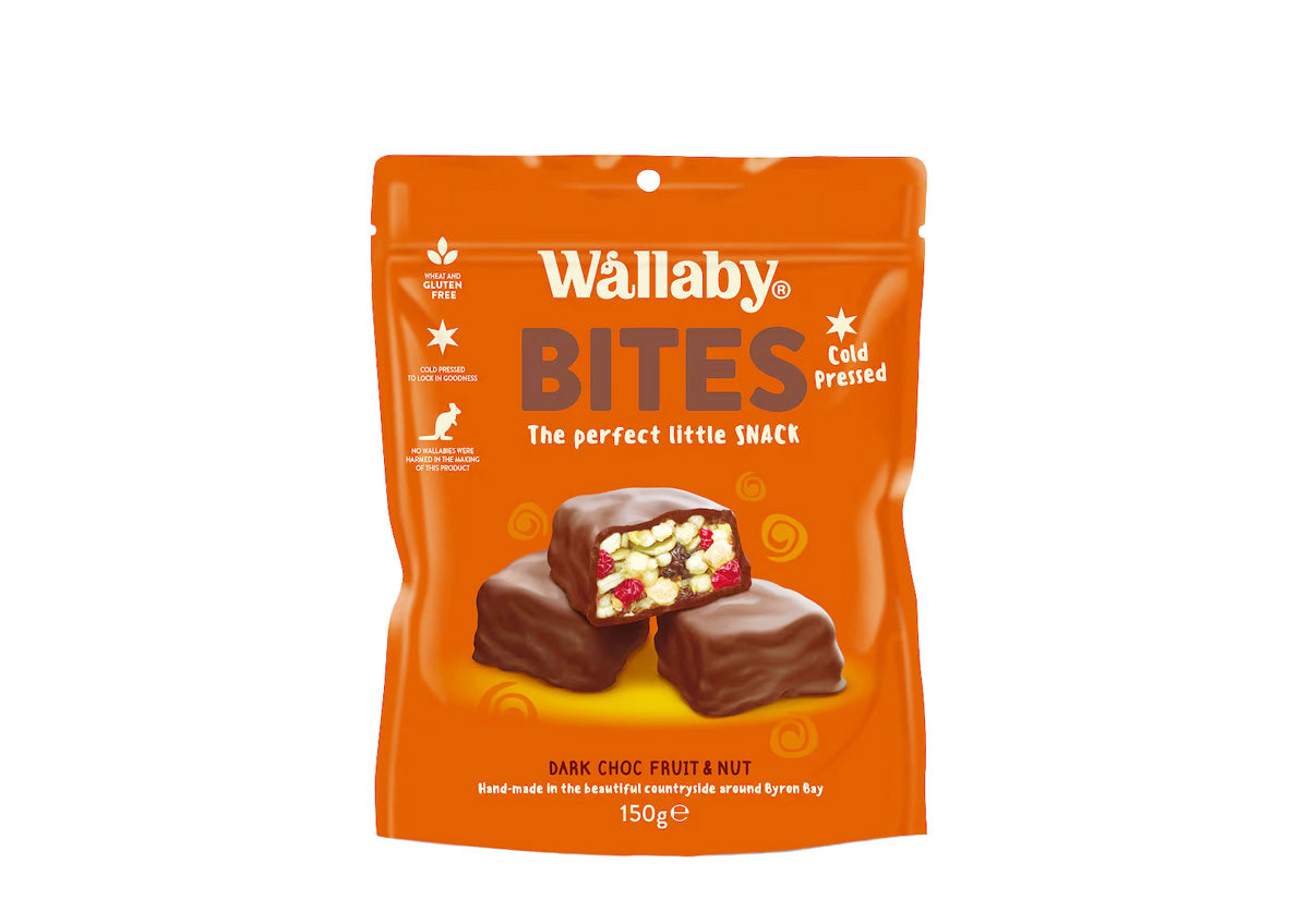 Wallaby Bites Dark Chocolate Fruit Nut are made from rice, nut seed and fruit. Free from gluten and wheat, these perfect little snacks are cold pressed to lock in the flavour. Great to share between family and friends – or enjoy all on your own!