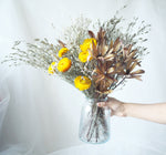 OPEHLIA features a curated selection of dried blooms, styled in a classic round vase. Designed to draw the eye and elevate any interior, this large dried arrangement blends natural textures and bright earthy tones — a centrepiece created to be admired season after season.