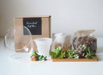 The kit includes everything you need to create the succulent terrarium, including a free watering bottle.